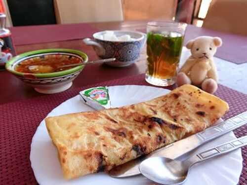 こんばんにゃ 今日は丸々1日マラケシュ観光。 GWのモロッコは、日の出6:40頃、日の入20:00頃なので、 街全体が日本よりなんとなく後ろ倒しな感じで活動。宿の朝食も8:30〜だった。 このクレープみたいなやつ、よく出てきた。 ムチムチした食感で、甘いジャ…